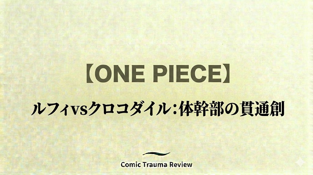 アラバスタ編。誰もが息を飲んだのは、クロコダイルのフックがルフィの左胸を「がっつり」貫通するあの瞬間です。ルフィは血を吐き(喀血)、砂地に倒れましたが、手術の描写なく復帰し、その後クロコダイルとの第2戦、3戦へと続いていきます。
