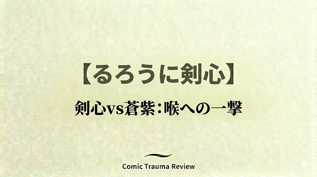 剣心が蒼紫の喉(前頸部の正中、いわゆる“のど仏”付近)に連続で強烈な打撃を叩き込み、勝利します。剣心自身も「呼吸困難と激痛は必須」と語りますが、読者としてはこう思うはず。